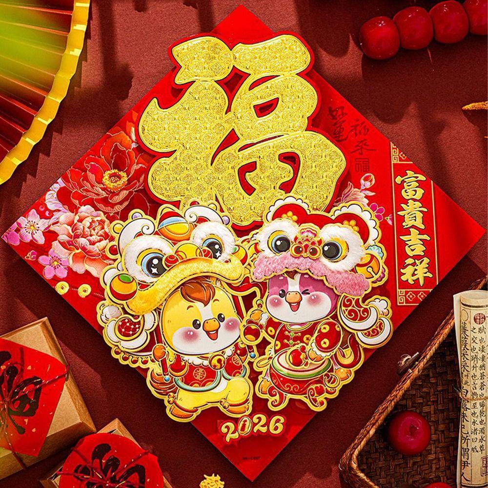 Cartoon 3D Fu Character Stickers Flocking Plush Window Sticker Living Room Decor