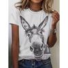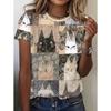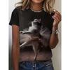 Women's summer hot T-shirt casual elegant fashionable abstract black cat 3D printed women's round neck short sleeved top