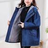 Damjacka i denim med huva och plyschfoder, medellång, stora storlekar, casual, Höst/Vinterkollektion 2025