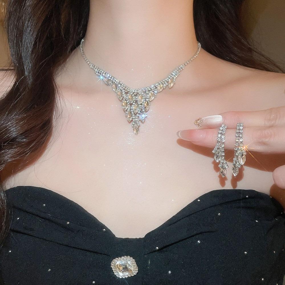 2 pieces Water Drop Rhinestone Jewelry Set Inlaid Crystal Necklace Set Banquet