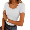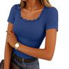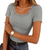 Elegant spetsinfällning vid urringningen: Med en delikatt spetsskarv vid urringningen kombinerar denna topp enkelhet med sofistikering.. De intrikata detaljerna tillför en touch av femininitet och elegans och lyfter din vardagslook utan ansträngning.