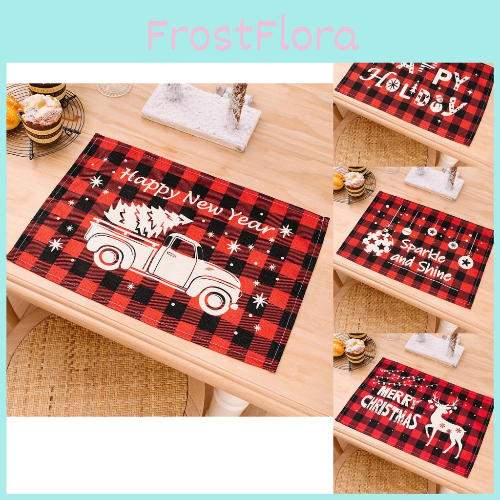 Festlig Jul Röd Svart Rutig Broderad Bokstav Bordsunderlägg För Julglädje