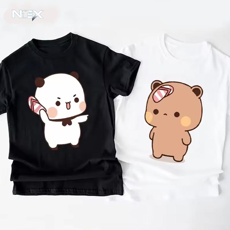 Panda Björn Bubu Kastar Flip-Flop Till Dudu T-shirt Män Kvinnor Rolig Par T-shirt Casual Bomull Mode Söt T-shirt Alla Hjärtans Dag