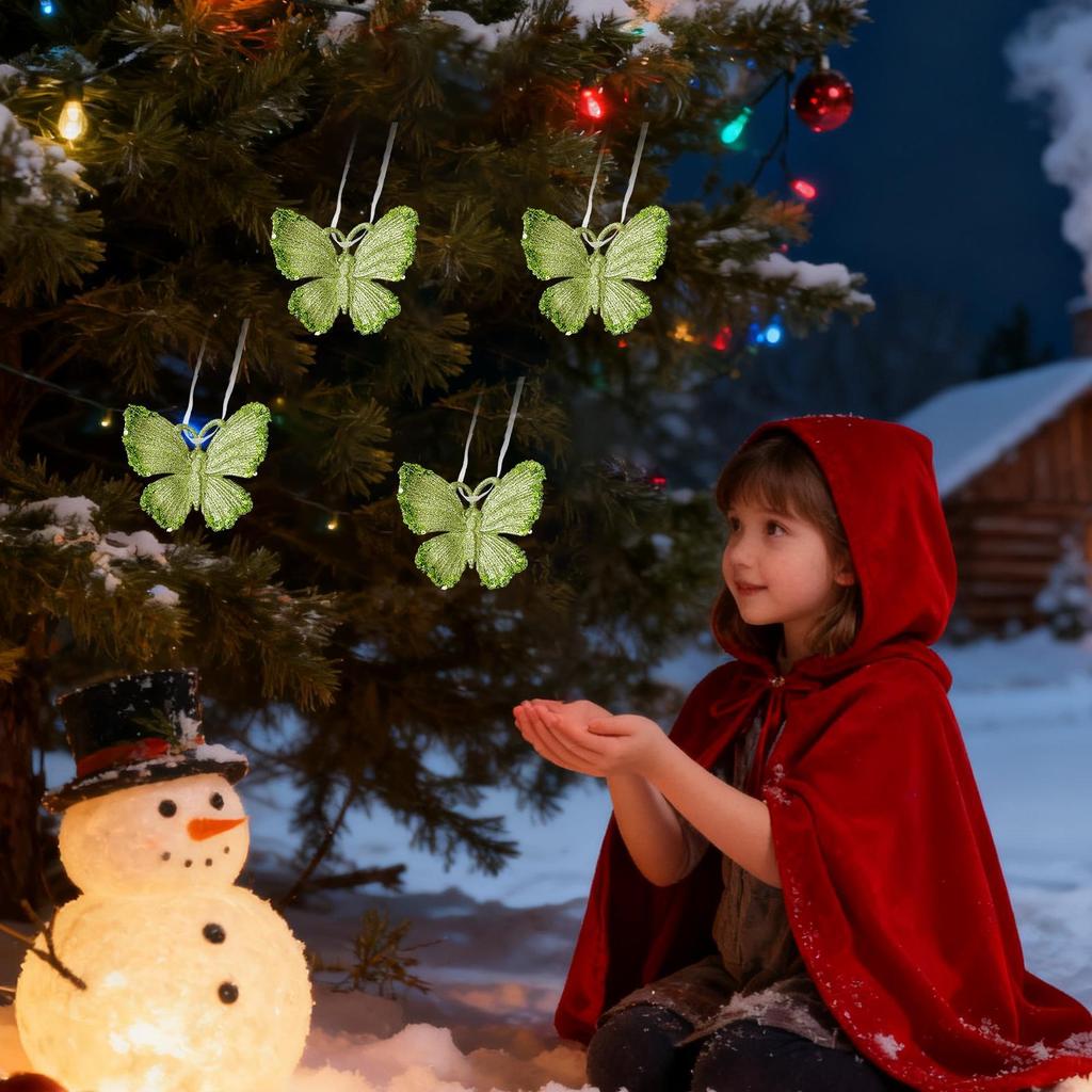 Snowflake Decorations 3D Lightweight Festive Green Glitter Detail Pendant Cute Christmas Ornaments for Indoor Home Living Room