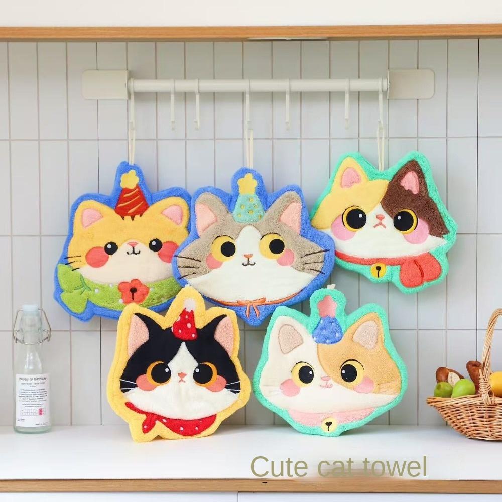 Coral Fleece Toilet Handkerchief Cute Cat Washcloth Durable Bathroom Kerchief Kitchen