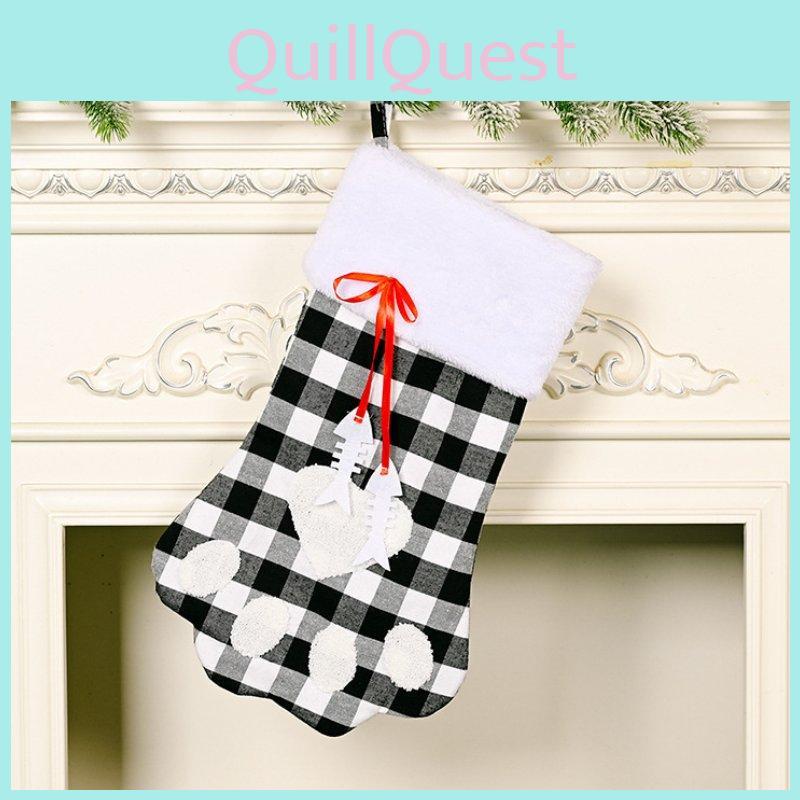 Adorable Red And Black Plaid Dog Paw Christmas Sock Ideal Holiday Gift Bag For Children