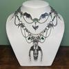 Detta Halloween-halsband har en lager-på-lager, geometrisk design tillverkad av slitstark legering med en galvaniserad finish.. Den mäter cirka 16,1 till 19,7 tum, vilket gör den lätt och bekväm för längre användning. Den O-formade kedjan förstärker det moderna, stilfulla utseendet.