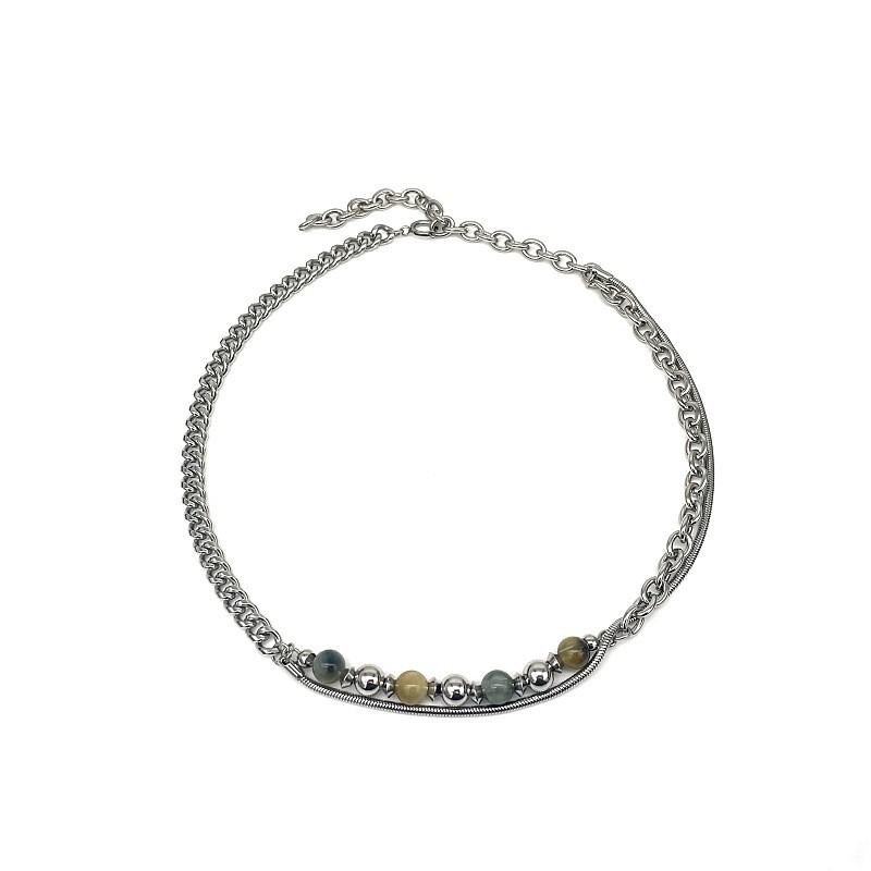 Geometric Stainless Steel Necklace With Natural Stone Beads For Unisex Fashion