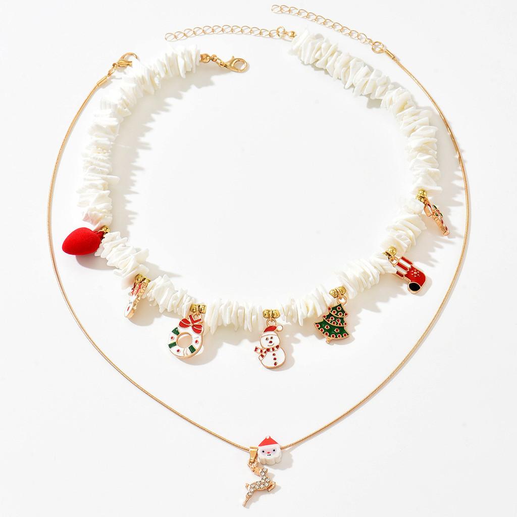 Christmas Necklace For Women With Snowflake And Santa Claus Charms In Zinc Alloy Jewelry Accessory For Holiday Festivities