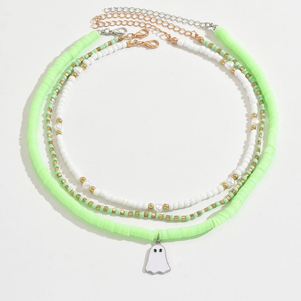 Halloween Hängsmycke Halsband Med Tecknade Spökpärlor Och Flerlagersdesign För Kvinnor