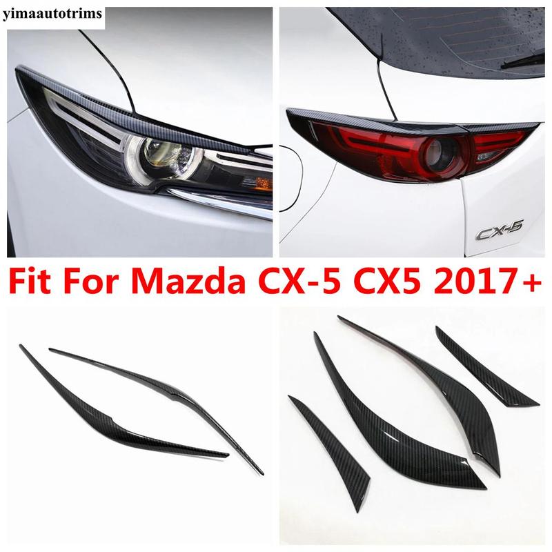 Front Head Light Eyebrow Strip / Rear Lamp Eyelid Decoration Cover Trim Carbon Fiber Accessories For Mazda CX-5 CX5 2017 -