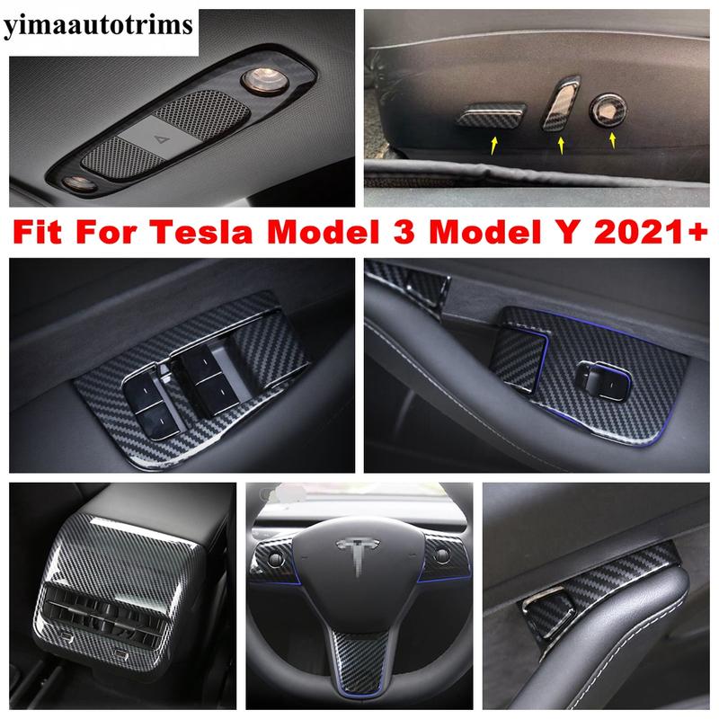 Steering Wheel Window Lift Door Lock Air Adjust Button Cover Trim Carbon Fiber Accessories For Tesla Model 3 Model Y - 2024