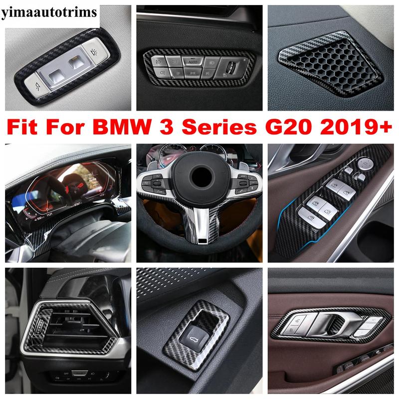 Head Lamp Handle Bowl Dashboard Gear Box Panel Cover Kit Trim ABS Carbon Fiber Look Accessories For BMW 3 Series G20 - 2024