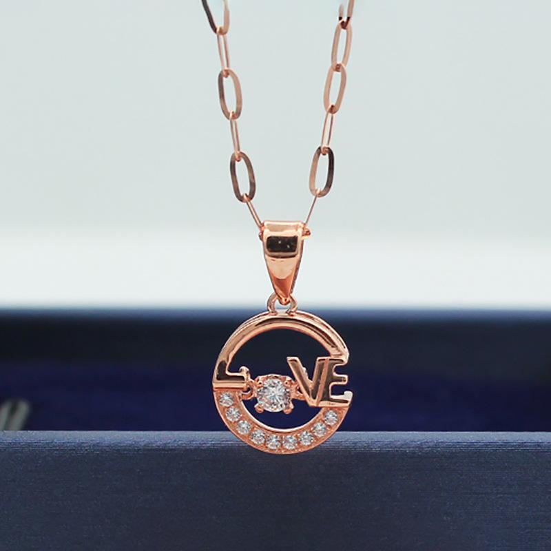 Exquisite Russian 585 Purple Gold Hollowed-Out Love Pendant, Fashionable And Shiny Rose Gold-Plated Smart Zircon Necklace.