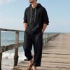 Lös linne herr långärmad huvtröja och byxor strand casual kostym 2-delat set