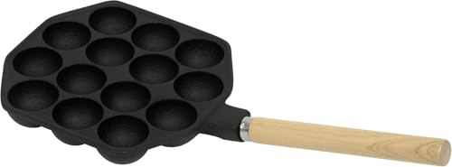 Ikenaga Iron Works Takoyaki Plate, 14 Holes, Long Wooden Handle, Cast Iron, Gas Stove Only, Made in Japan, 000410