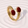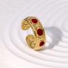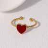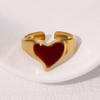 Vintage Red Drip Oil Geometric Rings for Women Stainless Steel Gold Color Heart Opening Adjustable Finger Rings Jewelry New