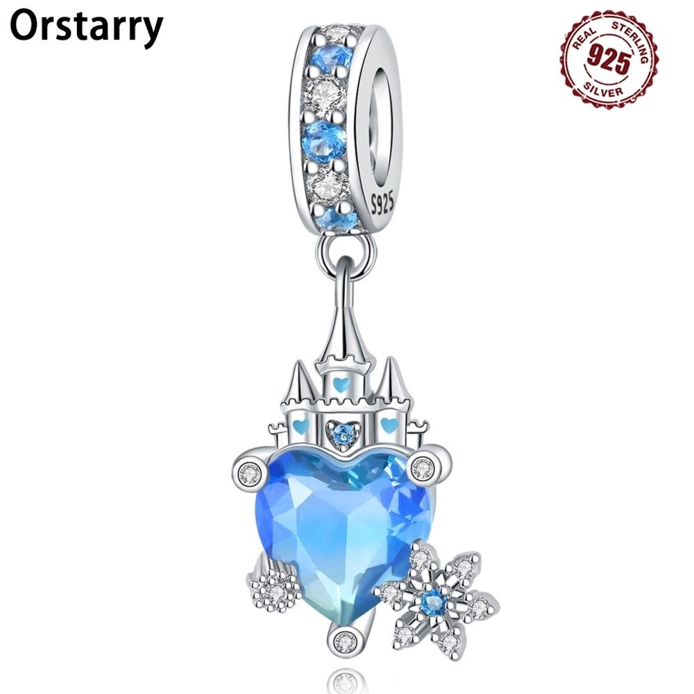925 Silver Blue Love Snowflake Castle Pendants Bracelet Charms Fit Women Jewelry Party Beads DIY Fine Gifts Accessories