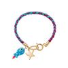 18K gold-plated stainless steel fish and starfish charm colorful woven rope bracelet, summer beach bohemian women's jewelry