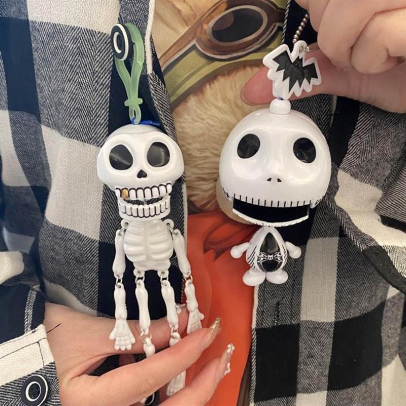 Halloween Spökligt Skelett Hänge Dragsko Leksak Nyckelring För Kvinnor Män Tillbehör Gåva