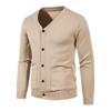 Ny Höst Vinter Herr Slim Fit Enfärgad Stickad Kofta Minimalistisk Mode Casual Mångsidig V-ringning Ficka Tröja Ytterplagg