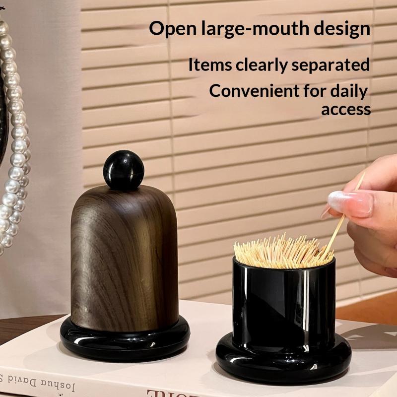 Imitation Walnut Color Toothpick Holder With Ball Top High-End Decor For Living Room & Kitchen, Portable