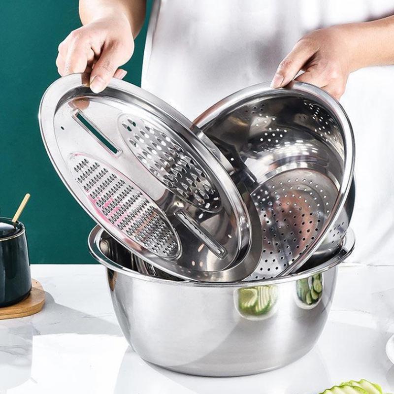 Stainless Steel Drain Basket 3 In 1 Colanders Basin Multifunct Vegetable Slicer Grater Thickened Drainage Basin Kitchen Tool New