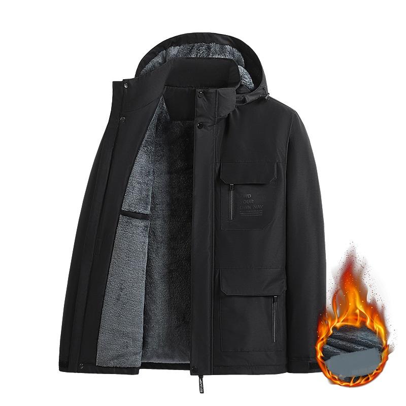 Sammetsvindjacka för män på hösten och vintern, Vindtät och vattentät anfallsjacka för utomhusbruk, Köldtåliga bomullskläder, Bomullskappa