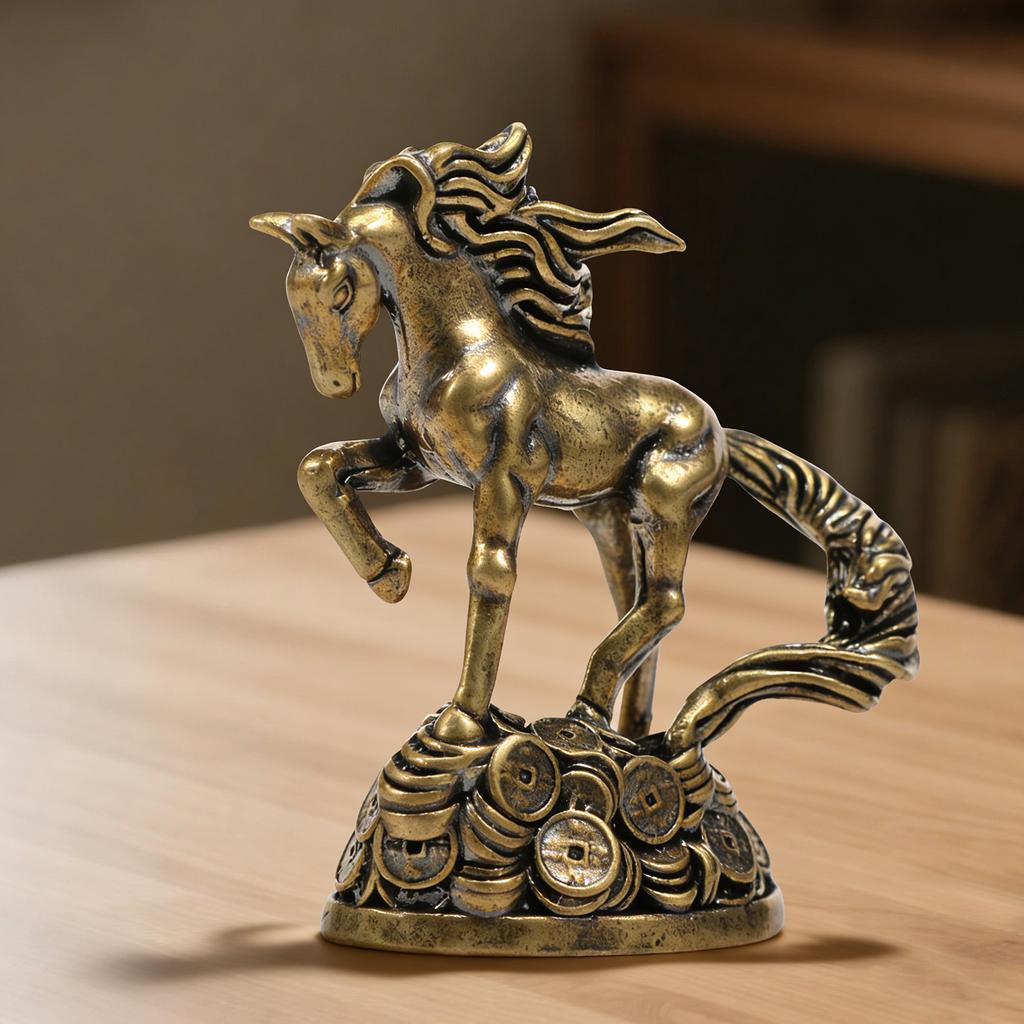 Horse Statue Feng Shui Ornament Mini Brass Horse Mascot Figurine Decor for Collectible Home Tea Pets Office Tabletop Car Decor