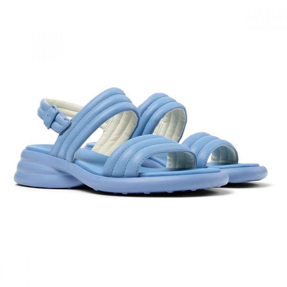 The product we introduce this time is the Spiro K201599-002, a women's blue strap sandal. This sandal features a leather lining, recycled OrthoLite® insole, and EVA outsole, providing a heel height of approximately 4.1 cm for a comfortable fit. The Spiro line is designed with a low wedge heel, making it ideal for daily wear.