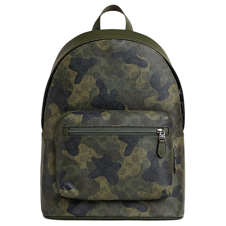 Coach West 32 Classic Logo Camouflage Print Zipper Closure Faux Leather Backpack Large Men backpack Deep-Trefoil-Green CW311-QBSB3