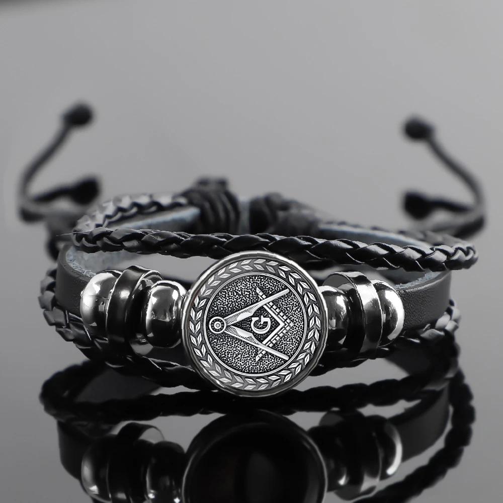 Vintage Freemasonry Bracelet Handmade Multilayer Braided Leather Rope Charm Jewelry Gift for Men Women