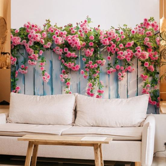 Spring Pink Flowers Fence Wall Decal Removable Floral Wall Art Murals Peel And Stick Self-Adhesive Sticker for Girls Bedroom Living Room Nursery Decor