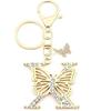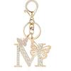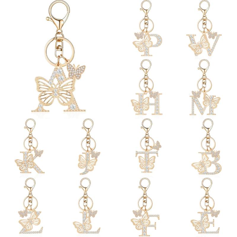 Exquisite Women Capital Letters Charms Keychain Initial 26 A-Z Butterfly Rhinestone Keyring Bag Decoration Pendant Girl Gift