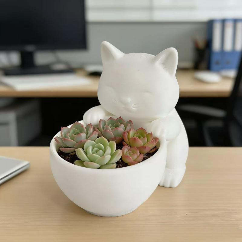 Kattformad Kruka Med Dräneringshål Unikt Designad För Suckulenter Små Blommor Och Kaktusar Sovrum Kontor Skrivbordsdekoration