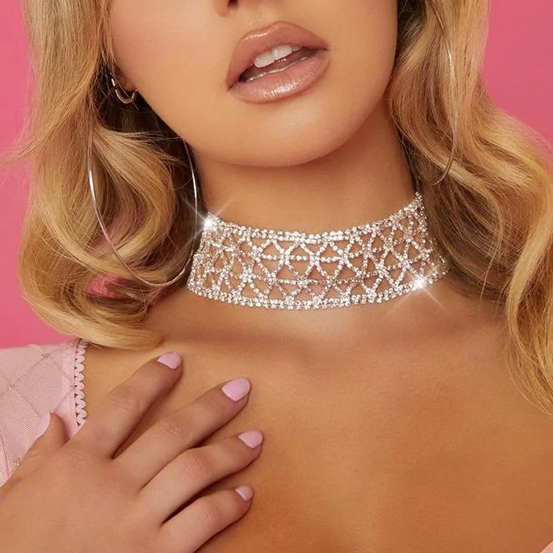 Glänsande Rhombus Strass Kors Halsband Flerlagers Nischdesign Halsband Trendigt Kall Vind Halsband Choker