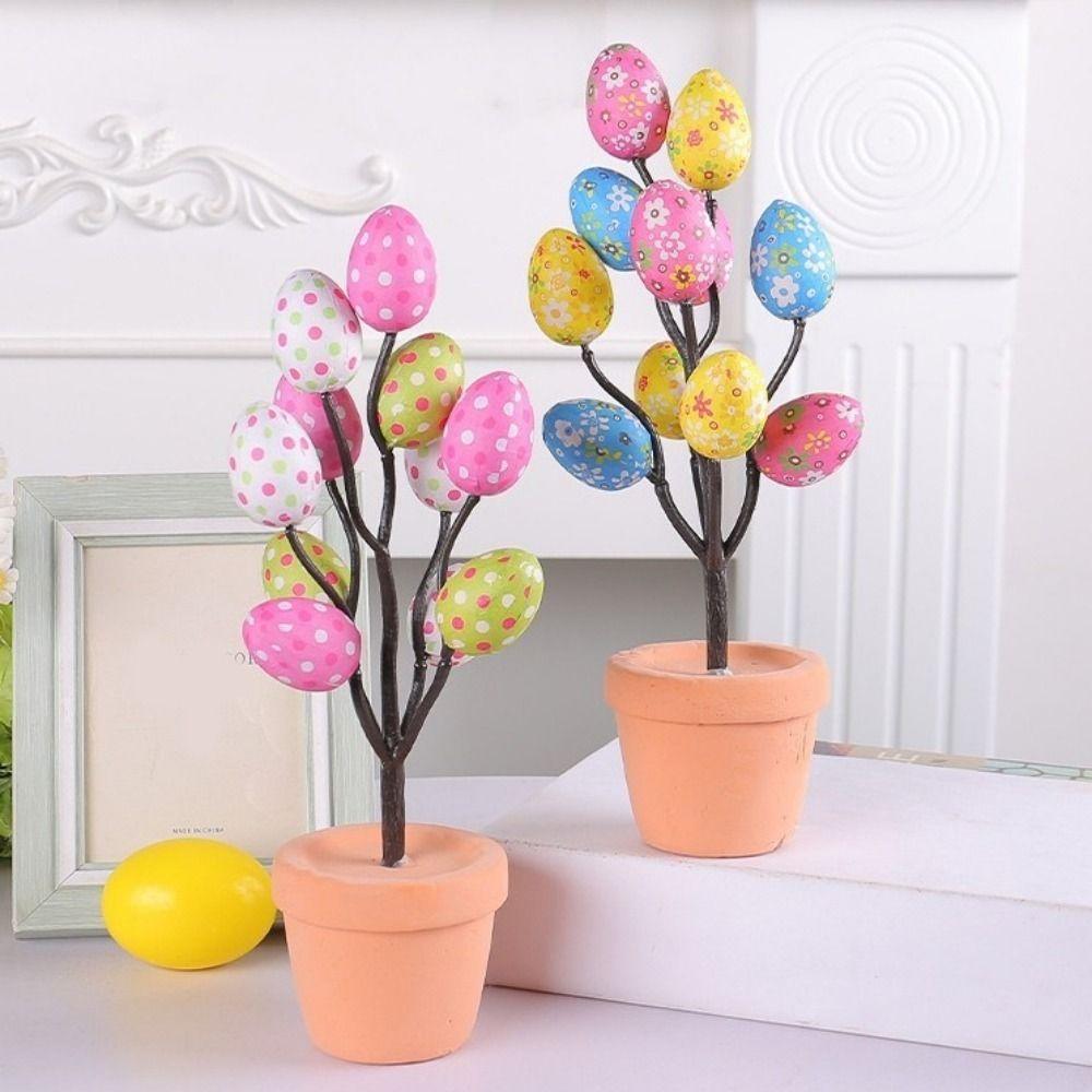 Simulated Eggs Tree Branch Colorful Egg Tree Flowerpot Easter Egg Bonsai Easter Decoration