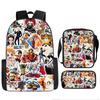 Versatile set includes backpack, shoulder bag, and pencil case