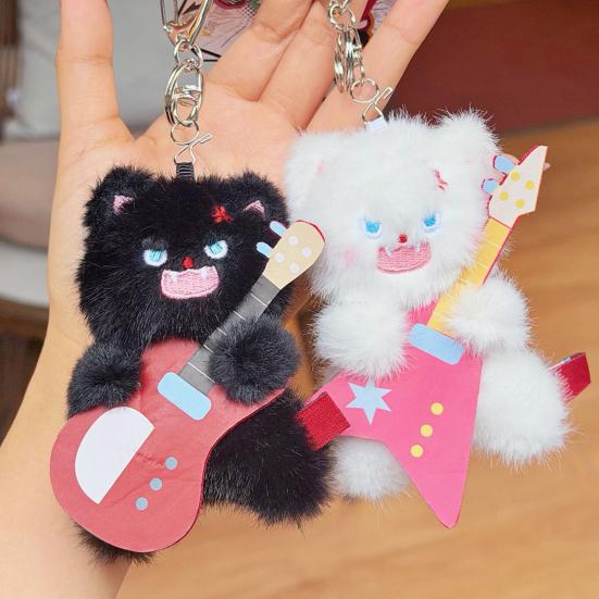 Electric Guitar Cat Keychain Plush Rock Star Cat Plush Pendant Soft Stuffed Cat Keyring Cute Bag Charm for Teens & Cat Lovers