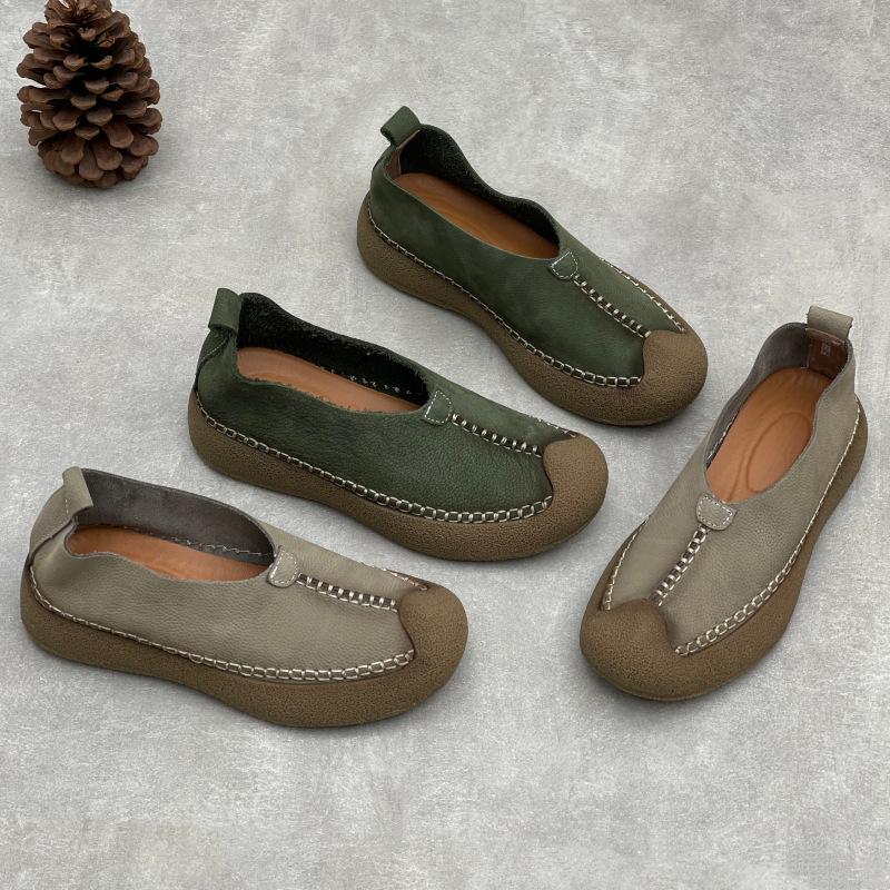 Johnature Retro Handmade Genuine Leather Loafers Soft Soled Cowhide Flat Women's Slip-on Shoes