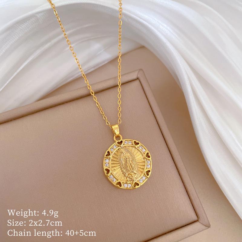Lyxig ihålig hjärtformad zirkon Jungfru Maria rund hängsmyckehalsband för kvinnor flickor rostfritt stålkedja guld färg smycken presenter
