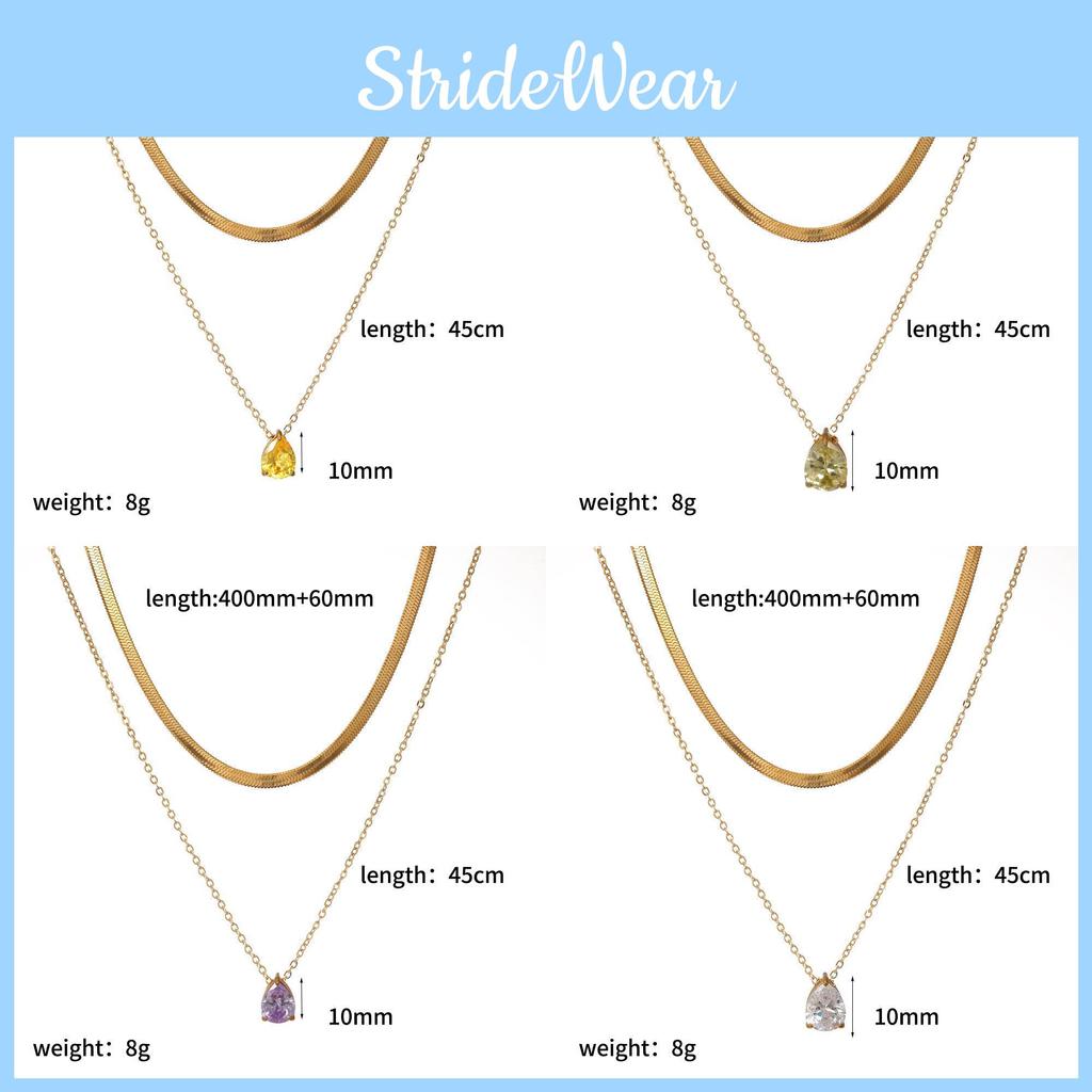 Detta lagerhalsband har ett vattendroppformat hänge prytt med färgglada kubiska zirkoniastenar, tillverkat av 304 rostfritt stål.. Den är 16,1 till 19,7 tum lång, väger 15 gram och använder PVD-vakuumförgyllning för hållbarhet. Idealisk för dagligt bruk eller speciella tillfällen, den tillför en touch av elegans till vilken outfit som helst.. Torka rent med en mjuk trasa för att behålla glansen.