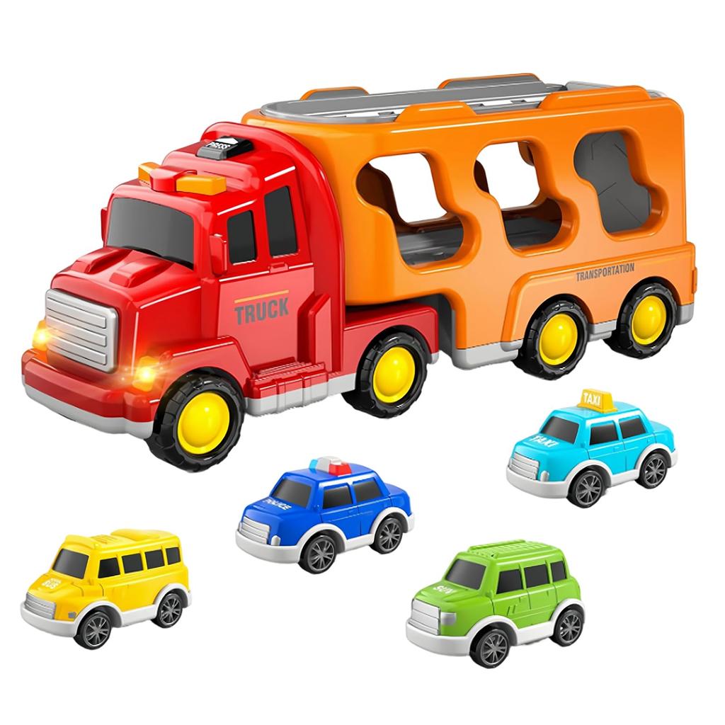 This large truck set is more than just a toy. It's designed to combine play and tidying up, supporting children's intellectual development and tidying up habits. This luxurious set includes one large storage carrier truck and four themed miniature cars. Playing with a variety of vehicles, including construction vehicles, fire engines, and police cars, stimulates intellectual curiosity and enriches pretend play as children learn about social roles.