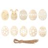 10pcs Easter Egg Wooden Pendants With Ropes, Unfinished Egg Shaped Cutouts Ornaments For Easter DIY Crafts Party Home Decorations