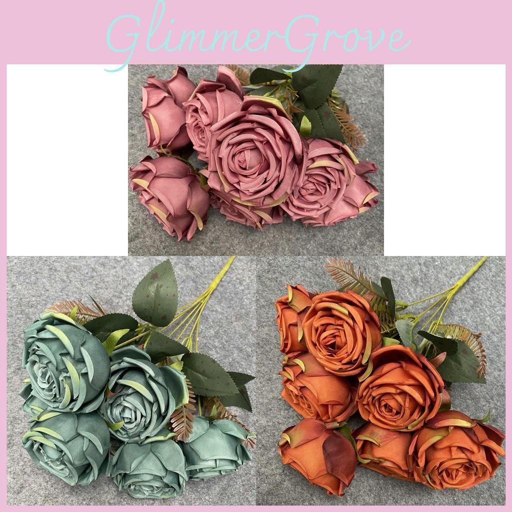 This artificial flower bouquet measures 17.7 inches in height and features a realistic design crafted using high-quality materials. Its detailed craftsmanship showcases vibrant colors including deep red, coffee, blue-green, cream, autumn orange, champagne pink, and brick red, offering versatile decorative options.