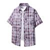 Vintage Kontrasterande Rutig Kortärmad Skjorta för Vår och Sommar, Lös Passform Parskjorta