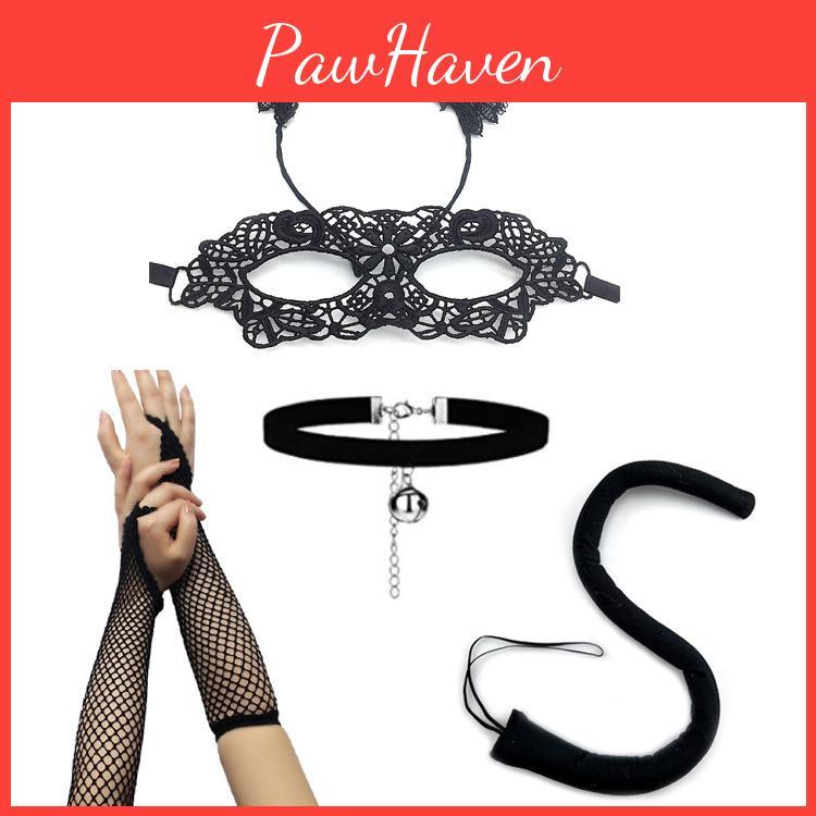 Halloween Cat Mask With Lace Detailing And Ears For Costume Party And Cosplay