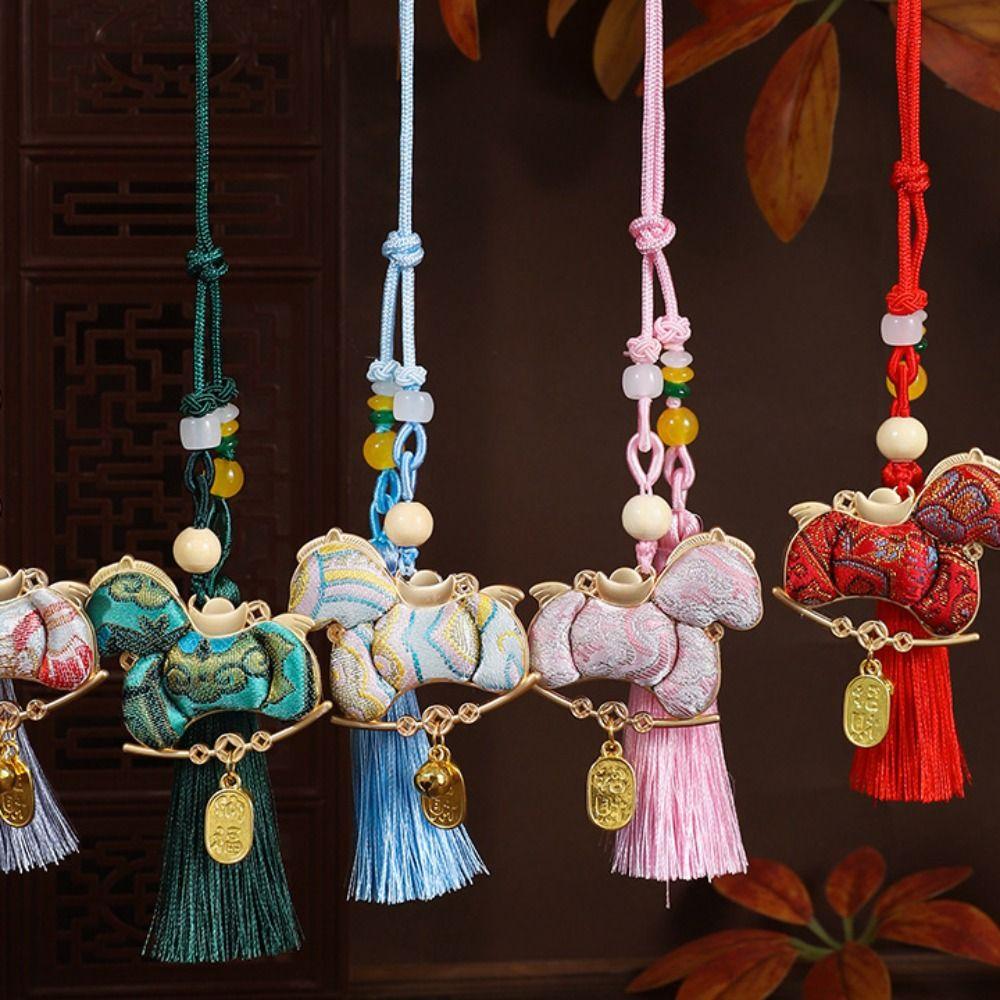 Chinese Style Pony Embroidered Pendant Satin Brocade New Year Horse Pendant Spring Festival Tassel Horse Hanging Decoration