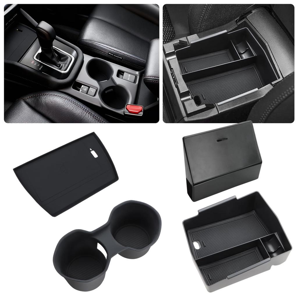 【Practical Forester Accessories】: The storage box is designed to neatly store small items, making organization easy and efficiently utilizing wasted space. Includes a wireless charging tray and cup holder.