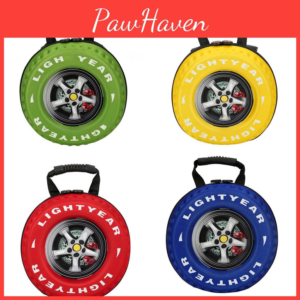 This children's backpack features a playful design with a tire-inspired EVA exterior, combining durability and style. Made of lightweight, water-resistant EVA material, it measures approximately deep. The backpack supports children in school settings, offering breathable, anti-shock, and anti-theft features. Users will appreciate the ergonomic, curved shoulder straps for comfortable wear and can easily wipe clean with a damp cloth.